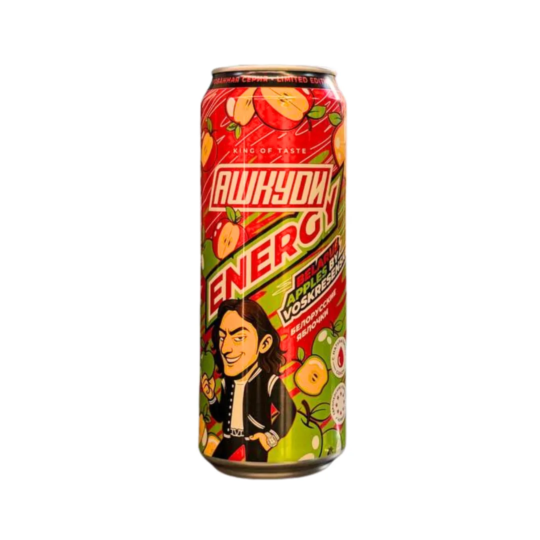 — Состав: вода, сахар, сокосодержащая основа (яблоко), регуляторы кислотности (лимонная кислота, цитрат натрия), таурин, кофеин, L-карнитин, ароматизаторы, краситель, соль, консервант (бензоат натрия), витамины группы B